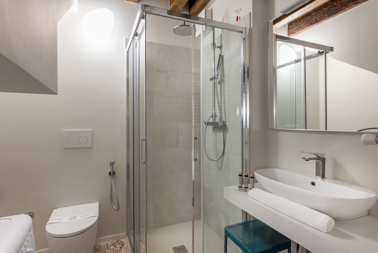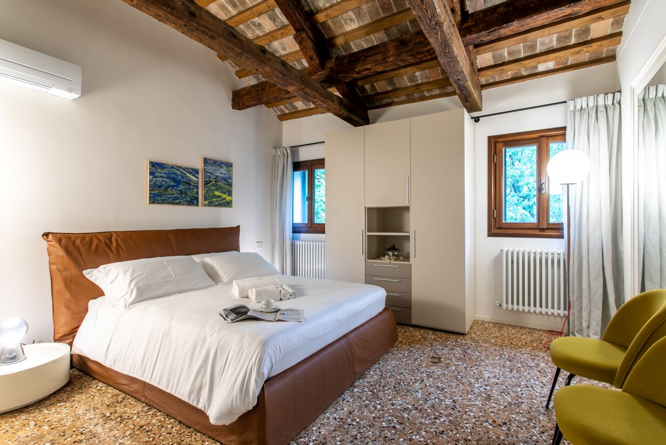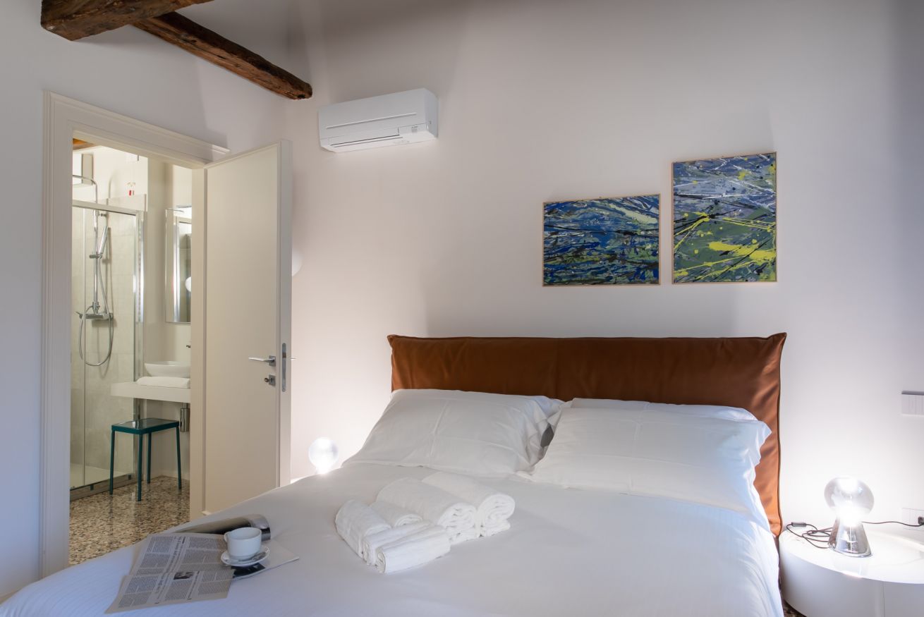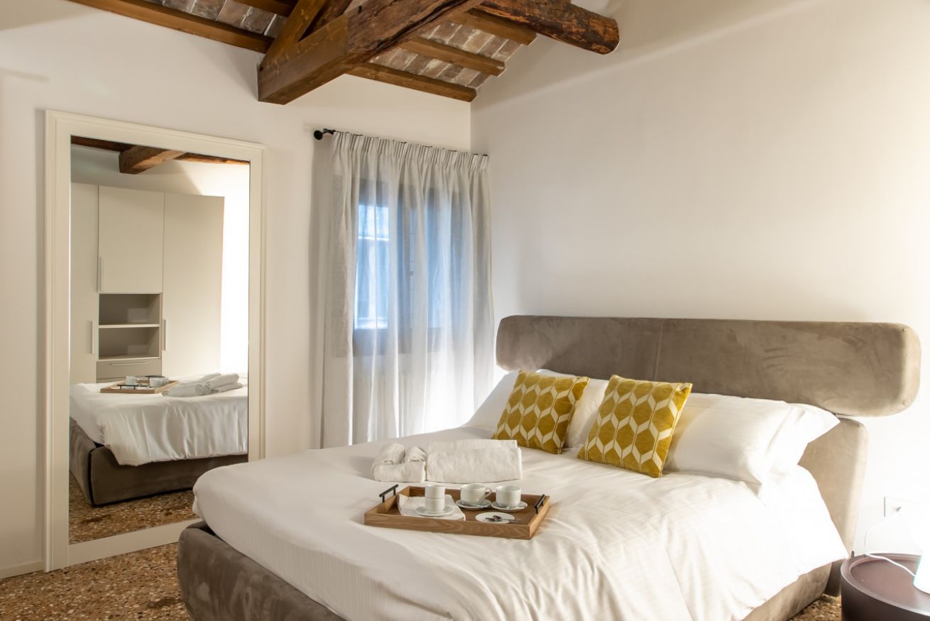 Situato a San Polo, il sestiere del Ponte di Rialto, ampio appartamento su due livelli, situato al secondo piano. Dispone di due spaziose camere da letto matrimoniali, di sala da pranzo con cucina completa di lavastoviglie, microonde e tutto l’occorrente per cucinare, di un elegante soggiorno con divano letto. Salendo le scale, si raggiungono il soppalco e la mansarda con due poltrone letto. La casa dispone di due bagni con doccia e una lavatrice. Infine, a disposizione Wifi super veloce e climatizzatore. L'ampio spazio di cui dispone questo appartamento lo rende arioso; le travi a vista lo rendono molto accogliente. Delle belle finestre quadrate si affacciano sul canale (il rio di San Zuane) e sulla calle. Nel grande soppalco travato con affaccio sul reparto giorno, la scrivania con macchina da scrivere e le poltroncine di un rilassante angolo lettura. Benvenuti nell'appartamento Scrittore.